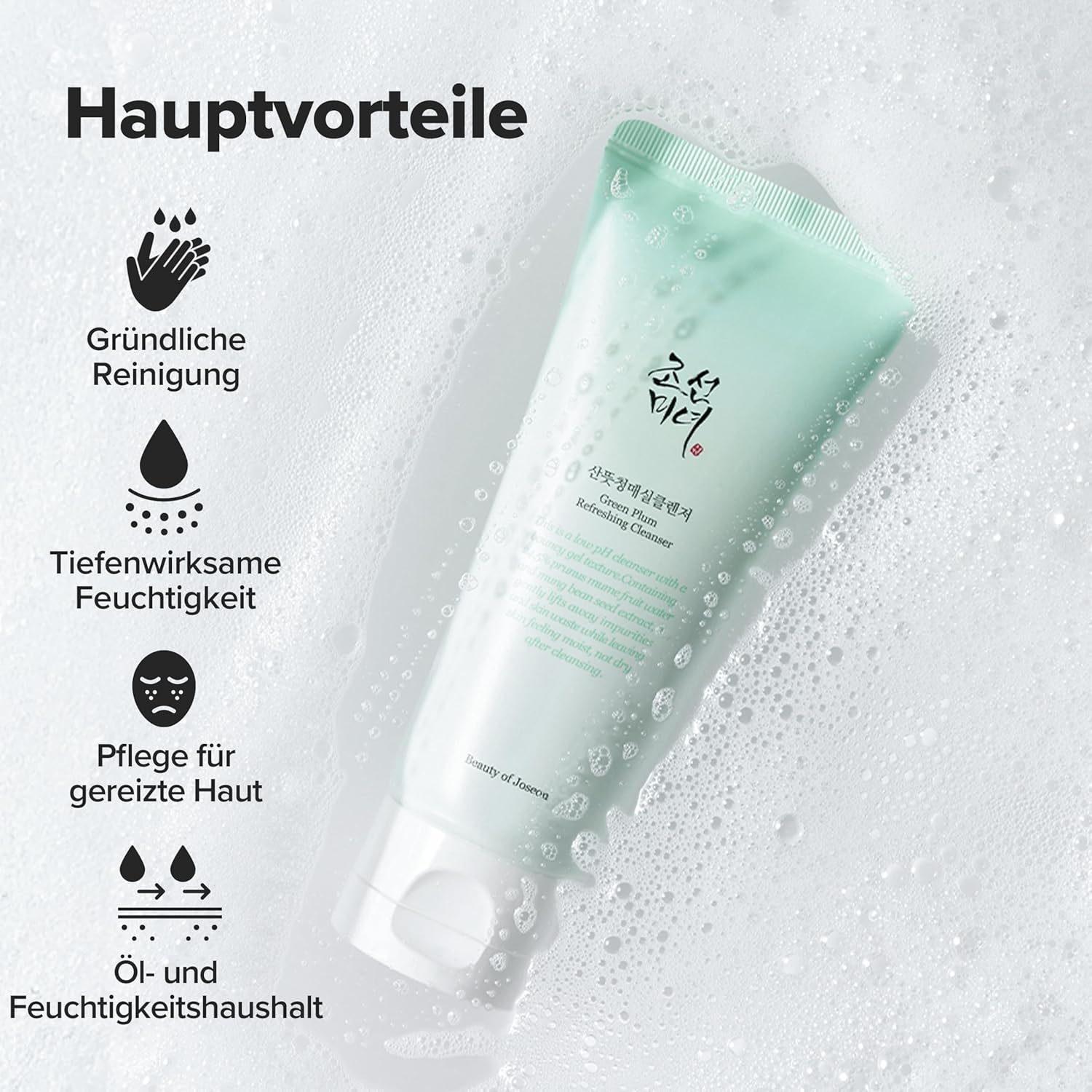 Eine kleine Menge mit Wasser in den Händen aufschäumen. 20–30 Sekunden sanft ins feuchte Gesicht einmassieren. Gründlich mit lauwarmem Wasser abspülen.