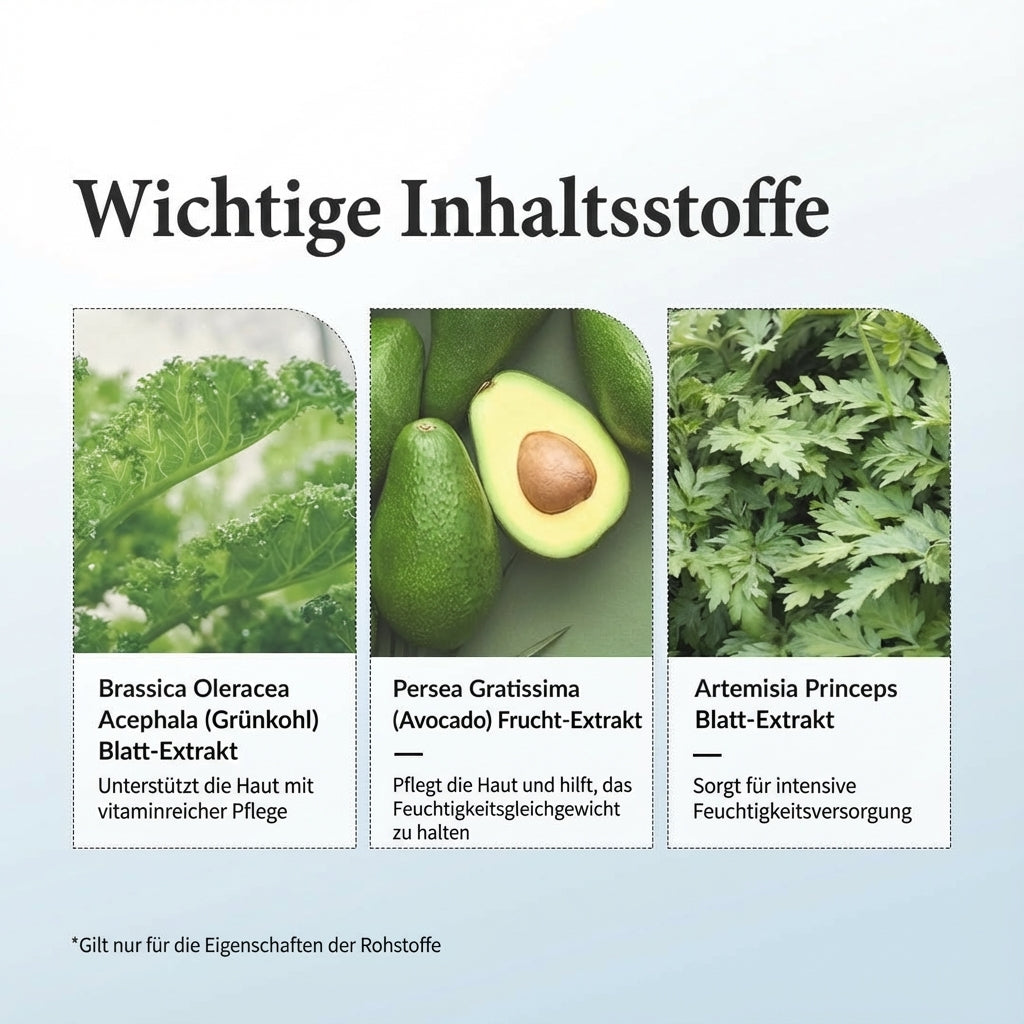 Water, Glycerin, Dipropylene Glycol, Cetearyl Alcohol, Caprylic/Capric Triglyceride, Methyl Trimethicone, Hydrogenated Polydecene, 1,2-Hexanediol, Phenyl Trimethicone, Vegetable Oil, Dimethicone/Vinyl Dimethicone Crosspolymer, Glyceryl Stearate SE, Artemisia Princeps Leaf Extract, Persea Gratissima (Avocado) Fruit Extract, Brassica Oleracea Acephala Leaf Extract, Laminaria Japonica Extract, Eclipta Prostrata Leaf Extract, Beta Vulgaris (Beet) Root Extract, Chamaecyparis Obtusa Leaf Extract, Coptis Japonica Root Extract, Hydrolyzed Gardenia Florida Extract, Paeonia Albiflora Flower Extract, Hydrogenated Lecithin, Pelargonium Graveolens Flower Oil, Sodium Hyaluronate, Camellia Sinensis Seed Oil, Argania Spinosa Kernel Oil, Palmitic Acid, Cetearyl Olivate, Sorbitan Olivate, C12-16 Alcohols, Behenyl Alcohol, Stearic Acid, Microcrystalline Cellulose, Cetearyl Glucoside, Ethylhexylglycerin, C12-15 Alkyl Benzoate, Ceramide NP, Squalane, Ammonium Acryloyldimethyltaurate/VP Copolymer, Panthenol, Polyglyceryl-10 Myristate, Glyceryl Polymethacrylate, Cellulose Gum, Butylene Glycol, Cholesterol, Fructooligosaccharides, Disodium EDTA, Beta-Glucan, Carnosine, Hydrolyzed Hyaluronic Acid, Methylpropanediol, Maltodextrin, Guaiazulene, Oligopeptide-1, Arginine, Carbomer, Tocopherol, Dimethylsilanol Hyaluronate, Hydrolyzed Sodium Hyaluronate, Potassium Hyaluronate, Hyaluronic Acid, Sodium Hyaluronate Crosspolymer, Hydroxypropyltrimonium Hyaluronate, Sodium Hyaluronate Dimethiconol, Sodium Acetylated Hyaluronate, Citronellol, Geraniol, Linalool.
