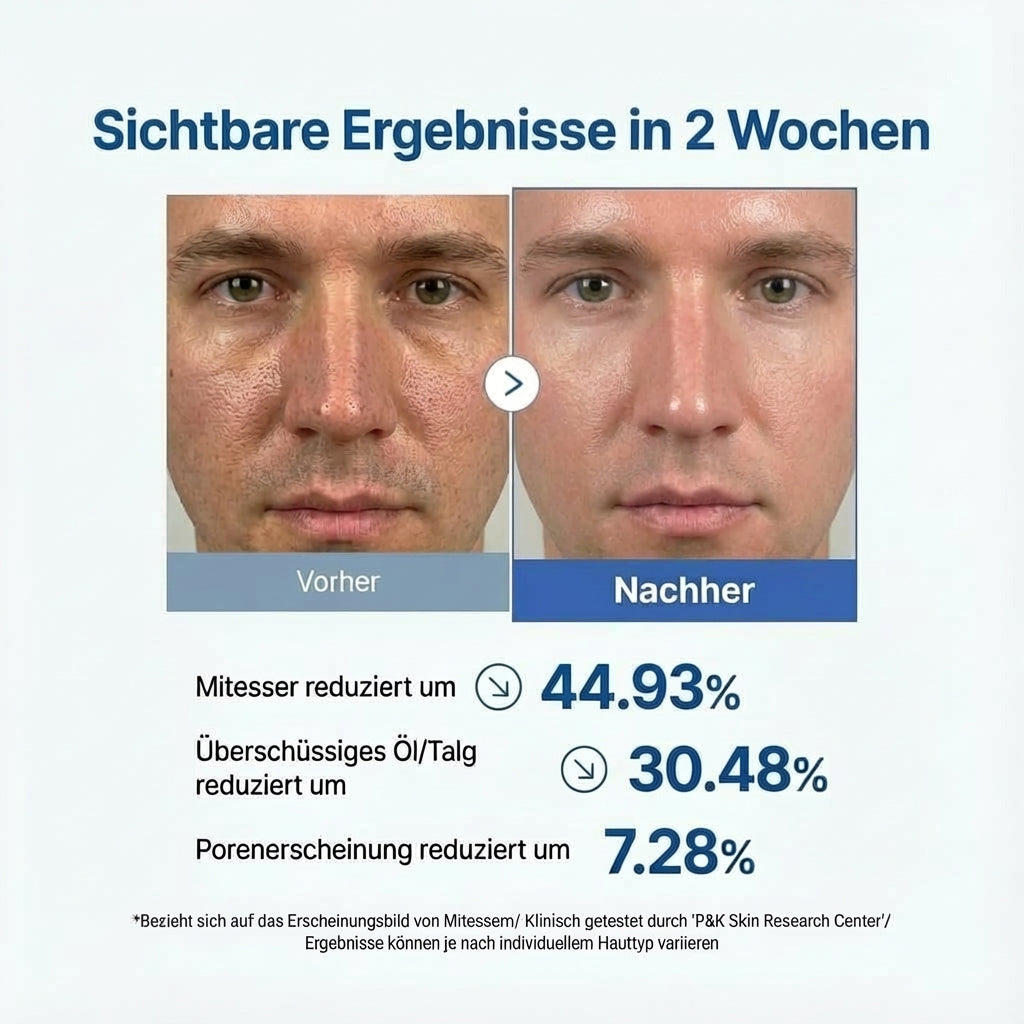 Männer haben diese Produkte über mehrere Wochen getestet, ihre Hautentwicklung dokumentiert und Feedback gegeben. Zusätzlich wurden die Ergebnisse mit digitalen Hautanalysen (AI Skin Scan) überprüft – erst dann hat ein Produkt es in dieses Set geschafft.